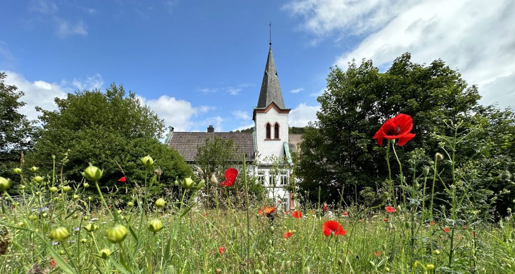 Im April 2023 wurde eine 300 qm² große Bienenwiese im ehemaligen Pfarrgarten hinter der Kirche angelegt. Mit über 30 Wildblumen und -kräutern bietet die Wiese ein ideales Blütenangebot für Bienen und Schmetterlinge. Mehrjährige Wildpflanzen schaffen zudem einen wertvollen Lebensraum für Insekten, Vögel und Wildtiere. Die Bienenwiese ist ein kleiner, aber wichtiger Beitrag zu mehr Nachhaltigkeit in der Kirche. Der Förderverein bedankt sich für die fachliche Beratung durch Ulrike und Gregor Rohlmann von der Initiative Nachhaltig Lüdenscheid und bei dem Garten- und Landschaftsbau Brocksieper und Milk für die Umsetzung.