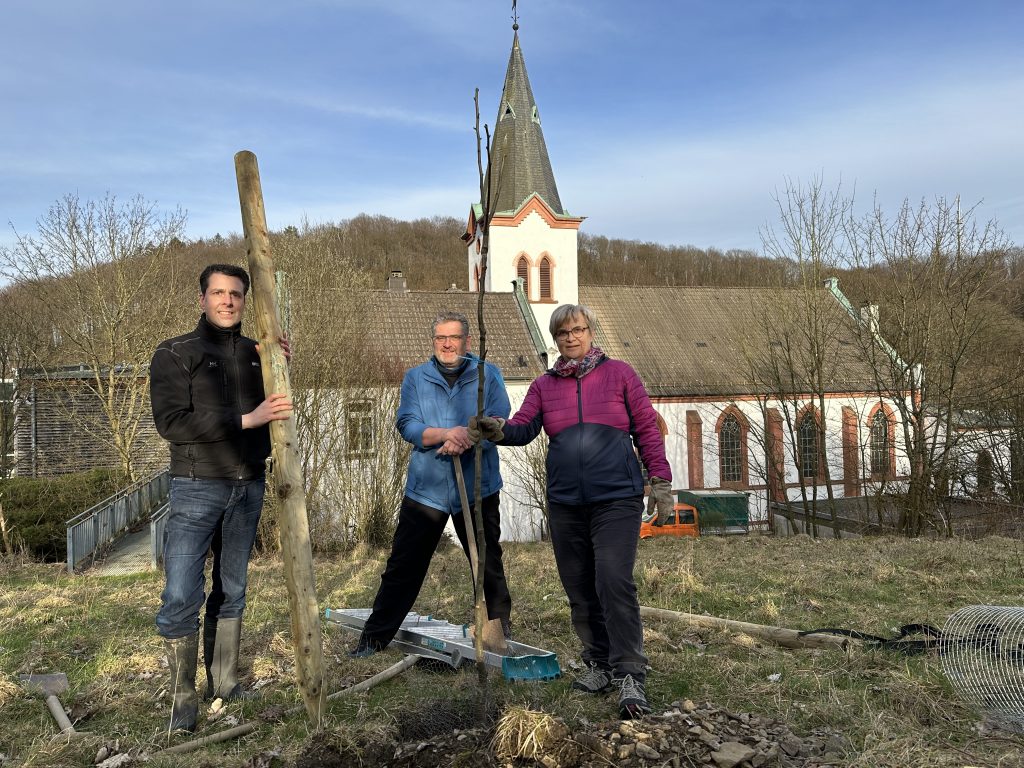 Martin Luther wird angeblich die Aussage zugeschrieben: „Wenn ich wüsste, dass morgen die Welt unterginge, würde ich heute noch ein Apfelbäumchen pflanzen“. Jedoch finden sich keine Belege dafür, dass dieser Satz von ihm stammt. Für den Förderverein gab es keine Untergangsstimmung, als sich der Vorstand im März auf der im Vorjahr angelegten Bienenwiese einfand. Vielmehr ging es darum den Nachhaltigkeit weiter zu fördern. Mit fachlicher Beratung von Volker Knipp aus dem Naturschutzzentrum Märkischer Kreis haben wir die Sommerbirne „Vieregge“ und den Apfelbaum „Oldentaleer Schloßrenette“ gepflanzt und uns dabei bewusst für Baumarten aus der Region entschieden. Gespannt verfolgen wir das Wachstum der beiden Bäume und erwarten gespannt, wann wir den ersten Obstkuchen backen können.